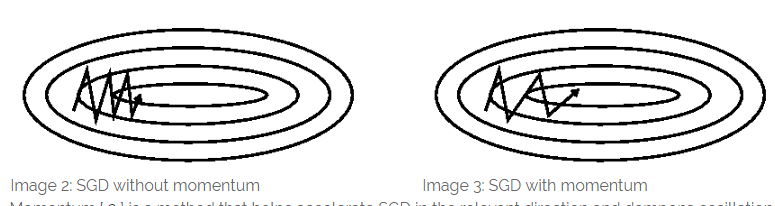 SGD –> Momentum 由于SGD在优化过程中容易产生震荡,为减小震荡,Momentum在梯度下降过程中引入了动量,使之具有惯性