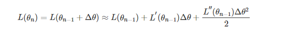 回顾之前的θn=θn−1+Δθ,我们将损失函数在θn−1处进行二阶泰勒展开