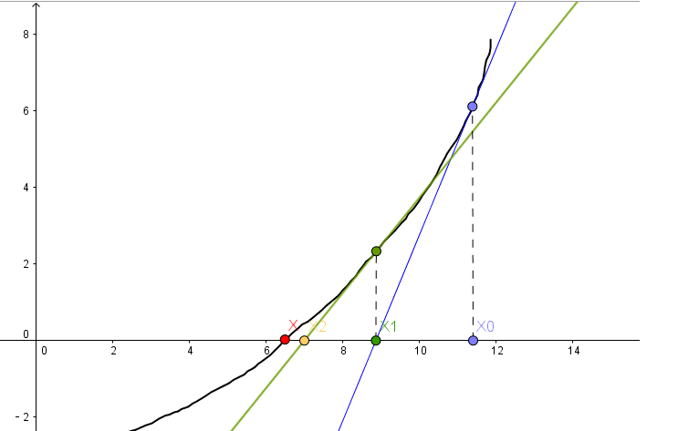 牛顿法的直观理解,跟新θ使其线不断逼近目标x