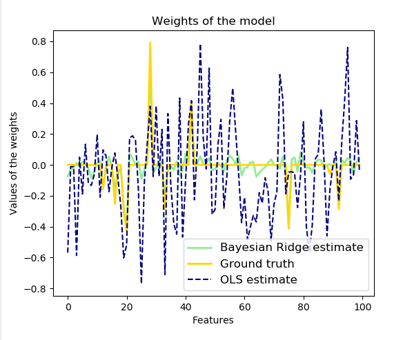 贝叶斯回归技术可以用于在估计过程中包括正则化参数:正则化参数不是硬的设置,而是调整到手头的数据。