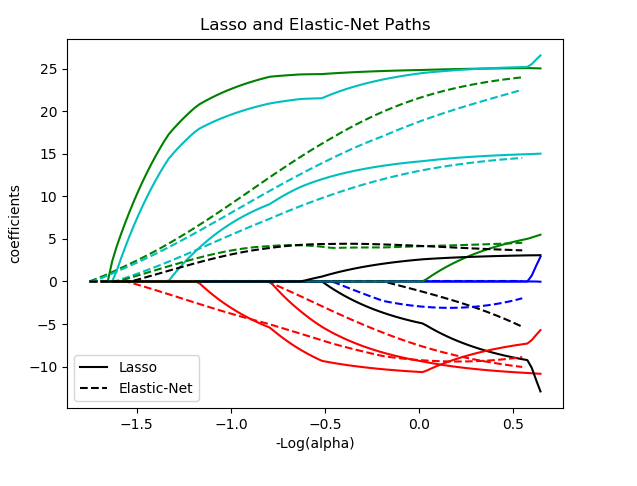 与基于 coordinate_descent 的实现不同,这产生了精确的解,其作为其系数范数的函数是分段线性的。